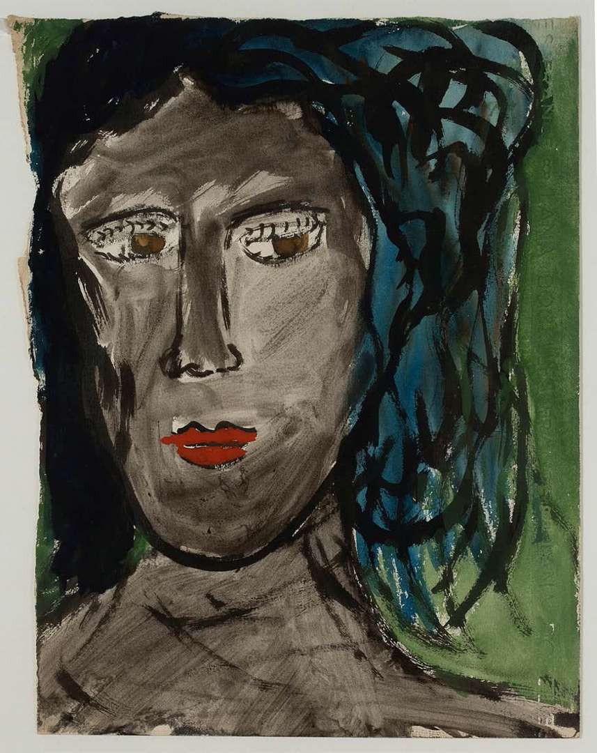 Aquarelle gouachée, Tête de femme | 33 x 25 cm.