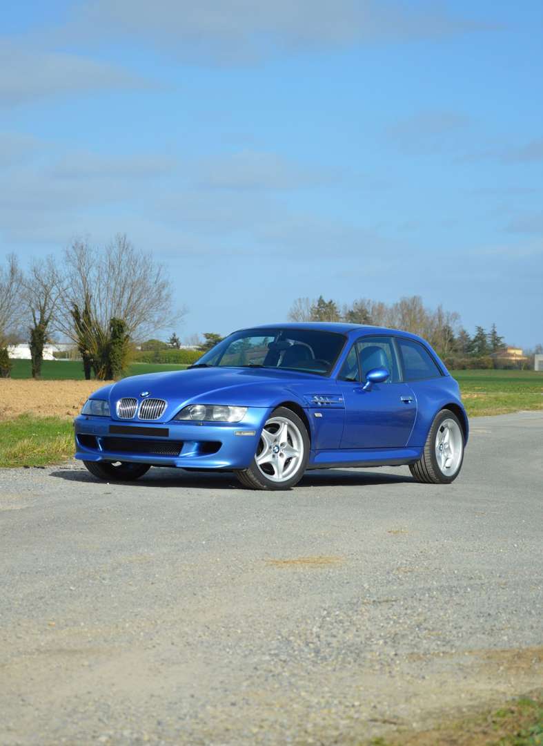 Il est peu courant qu’un coupé dérive d’un cabriolet : c’est plus souvent l’inverse. La version Coupé de la Z3 n’aurait d’ailleurs pas dû exister. L’idée germa au sein d’une petite équipe de chez BMW Motorsport GmbH, le but premier étant d’offrir un châssis plus rigide que le Z3 Roadster. La direction de la marque refuse d’abord le projet, jugé peu rentable et source de concurrence interne avec le coupé M3 E36 déjà existante. Pour réduire les coûts, Motorsport décide que son Z3 Coupé – qui reste une stricte deux places - reprendra un maximum de pièces du roadster. Il recevra aussi en plus du bloc Motorsport, le 2.8 à 6 cylindres afin d’atteindre des volumes de production suffisants. À force de persuasion le projet est validé par la direction. Chris Bangle prend la tête du design BMW en 1992, dans l’opération, l’homme et son équipe réalisent la transformation du roadster nom pas en coupé mais en petit break de chasse à hayon offrant l’avantage d’un vaste coffre. Présenté au salon de Francfort 1997, il conserve son faciès de squale auquel la greffe d’une cabine aux lignes fuyantes lui donne une des gueules les plus identitaires de la fin du 20e siècle. Si dans l’esprit elle peut rappeler la MGB GT, la Z3 Coupé se démarque de tout ce qui pouvait se faire dans les années 1990. Produite moins de trois ans à 18 000 exemplaires, le Z3 Coupé est d’ores et déjà collectionné. La version M avec son moteur S50 de première génération, celui de la M3 E36 3,2 l (3,2 l et 321 ch), a été produite à seulement 2 999 exemplaires. Vendu neuf au Japon, ce modèle doté du mythique bloc S50B32 a été mis en circulation le 11 mars 1999. Il a été importé en France en 2018, il est dédouané et possède son certificat de conformité permettant l’obtention d’une carte grise française. Tous les documents de bord en japonais sont présents et son état laisse rêveur.