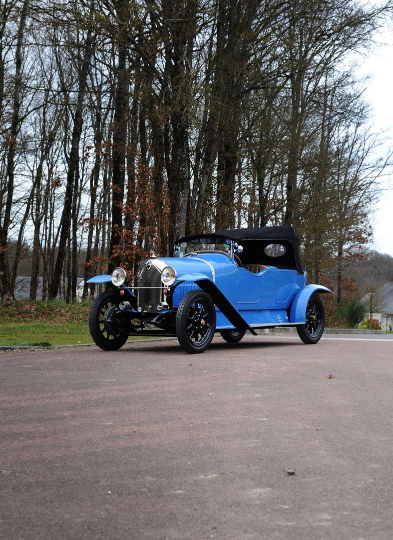 La Lorraine-Dietrich que nous présentons a été achetée par son actuel prioritaire il y a une dizaine d’années dans la région de Nancy. A l’époque le châssis était nu, seulement équipé de sa mécanique et accompagné de quelques éléments de carrosserie dont les quatres ailes, le capot, le pare-brise, les marches pieds ainsi que des phares. Le projet de restauration débuta en 2012 avec la fabrication d’une ossature bois en frêne qui nécessita 200 heures de travail. L’année suivante la voiture passe entre les mains du tôlier-formeur qui habillera la structure bois. Une fois terminée la nouvelle carrosserie reçoit sa peinture bleue actuelle. L’habitacle sera entièrement aménagé par le sellier avec un revêtement en cuir marron. On notera que cette auto est équipée d’un superbe tableau de bord en bois agrémenté de divers instruments O.S. Sous le capot, on retrouve un 4-cylindres de type 27 portant le numéro 160777. Cette voiture fonctionne à merveille, nous avons d’ailleurs été agréablement surpris par son comportement lors de notre essai routier. Son moteur atteint facilement les 80 km/h et son freinage est efficace. Pratiquement 10 ans après sa restauration, cette superbe auto se trouve toujours dans état magnifique, son propriétaire en a pris grand soin et s’en sépare aujourd’hui à contrecœur. Notre élégant torpédo au blason prestigieux vous procurera à coup sûr beaucoup de plaisir lors de vos balades ensoleillées.