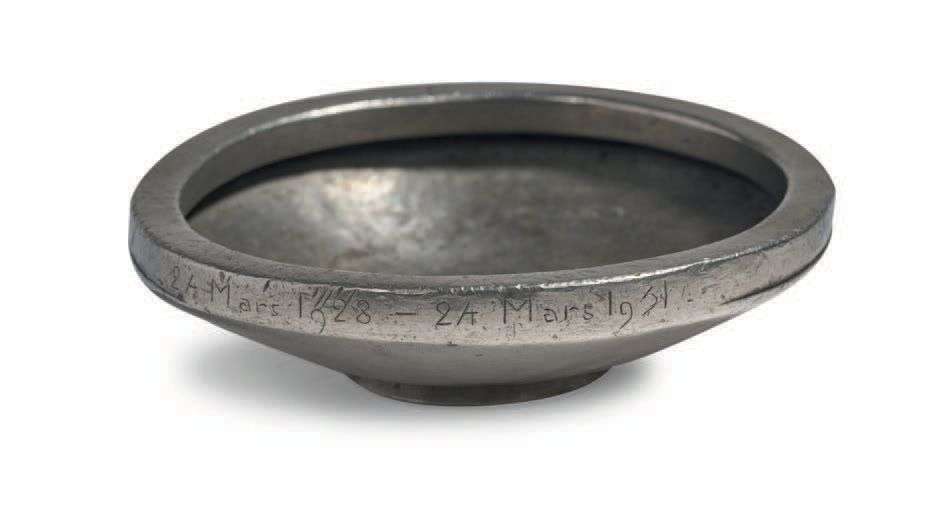 en étain martelé, à bord rentrant. Porte l'inscription «24 Mars 1928 - 24 Mars 1931»