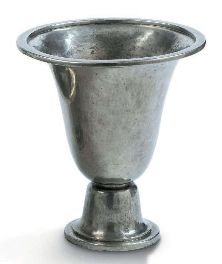 VASE TULIPE En étain martelé à large ouverture, reposant sur un piédouche.
