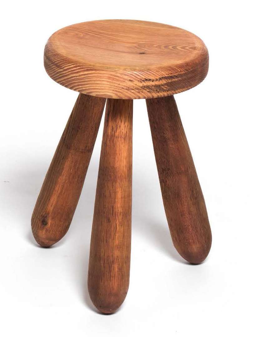 TABOURET TRIPODE Structure en pin teinté, assise circulaire.