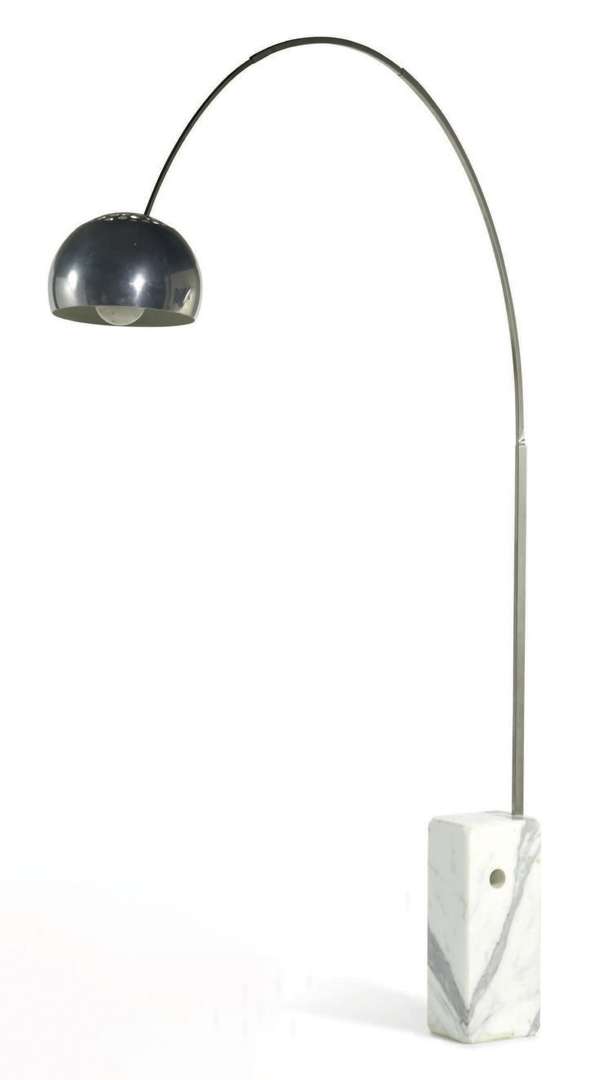 Importante base en marbre accueillant un bras arqué en métal chromé, à tige escamotable, terminée par un déflecteur hémisphérique.
