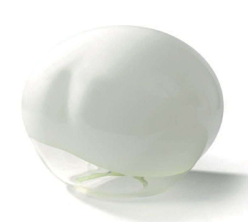 LAMPE GALET EN VERRE SOUFFLÉ BICOLORE (BLANC À LA PARTIE SUPÉRIEURE ET TRANSLUCIDE À LA BASE).