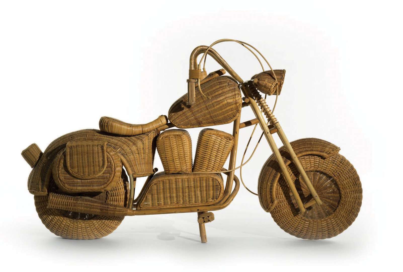 MOTO EN OSIER Réalisée pour les décors des vitrines des magasins Habitat (Usures)