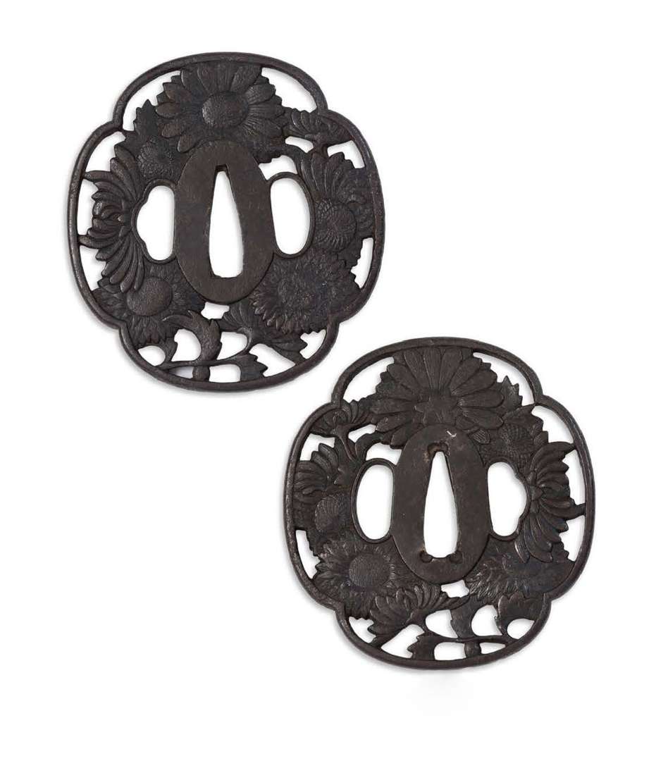 Moko gata en fer à décor ajouré de chrysanthèmes.