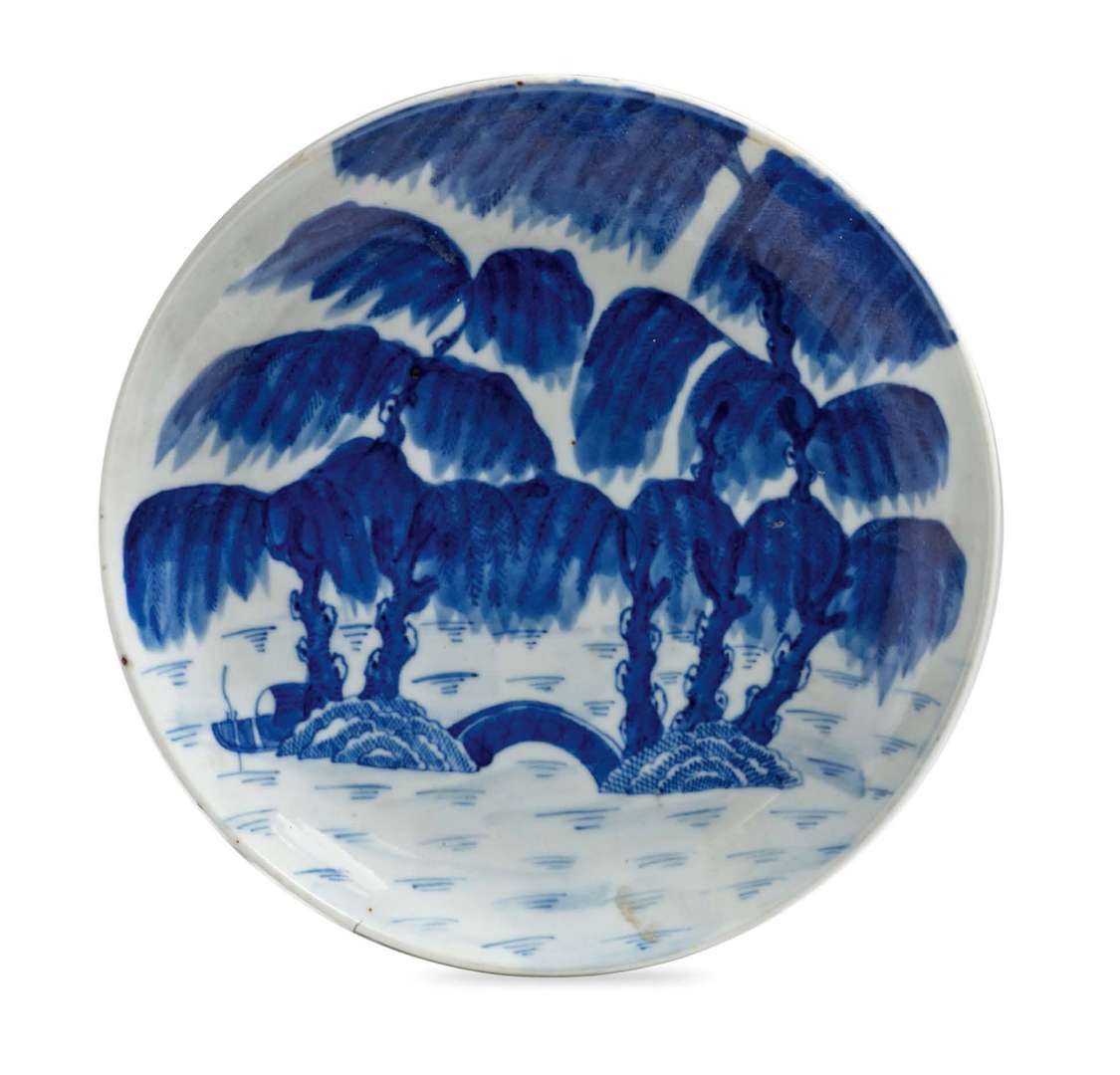 Coupe en porcelaine bleu-blanc de Huê à décor de saules-pleureurs.