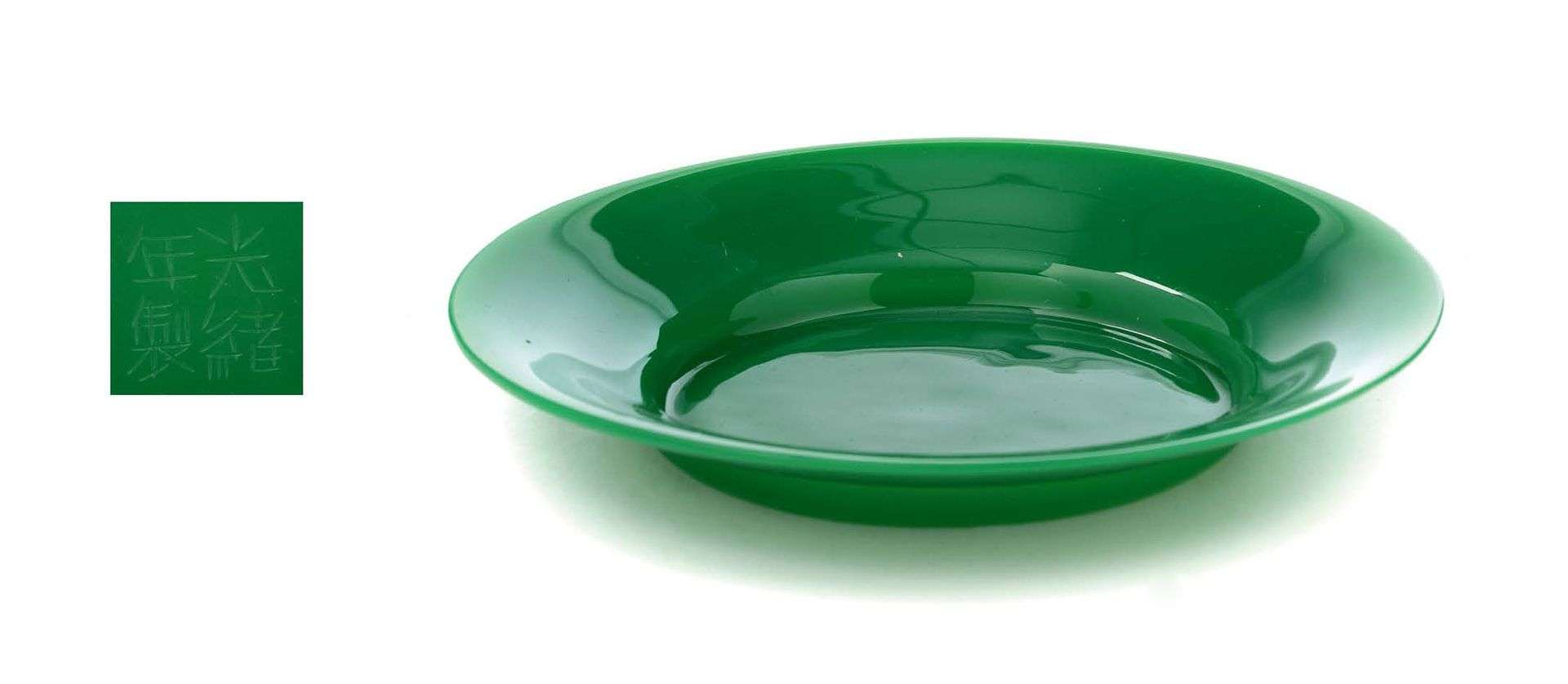 Coupelle en verre de Pékin de couleur verte jadéite.