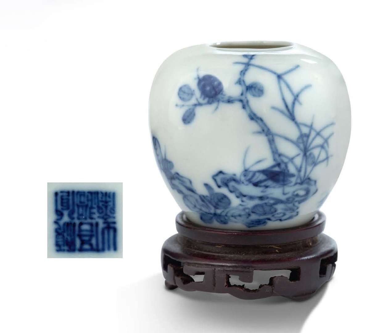 Marque apocryphe Wanpu sur la panse et la base. Avec socle en bois rapporté.