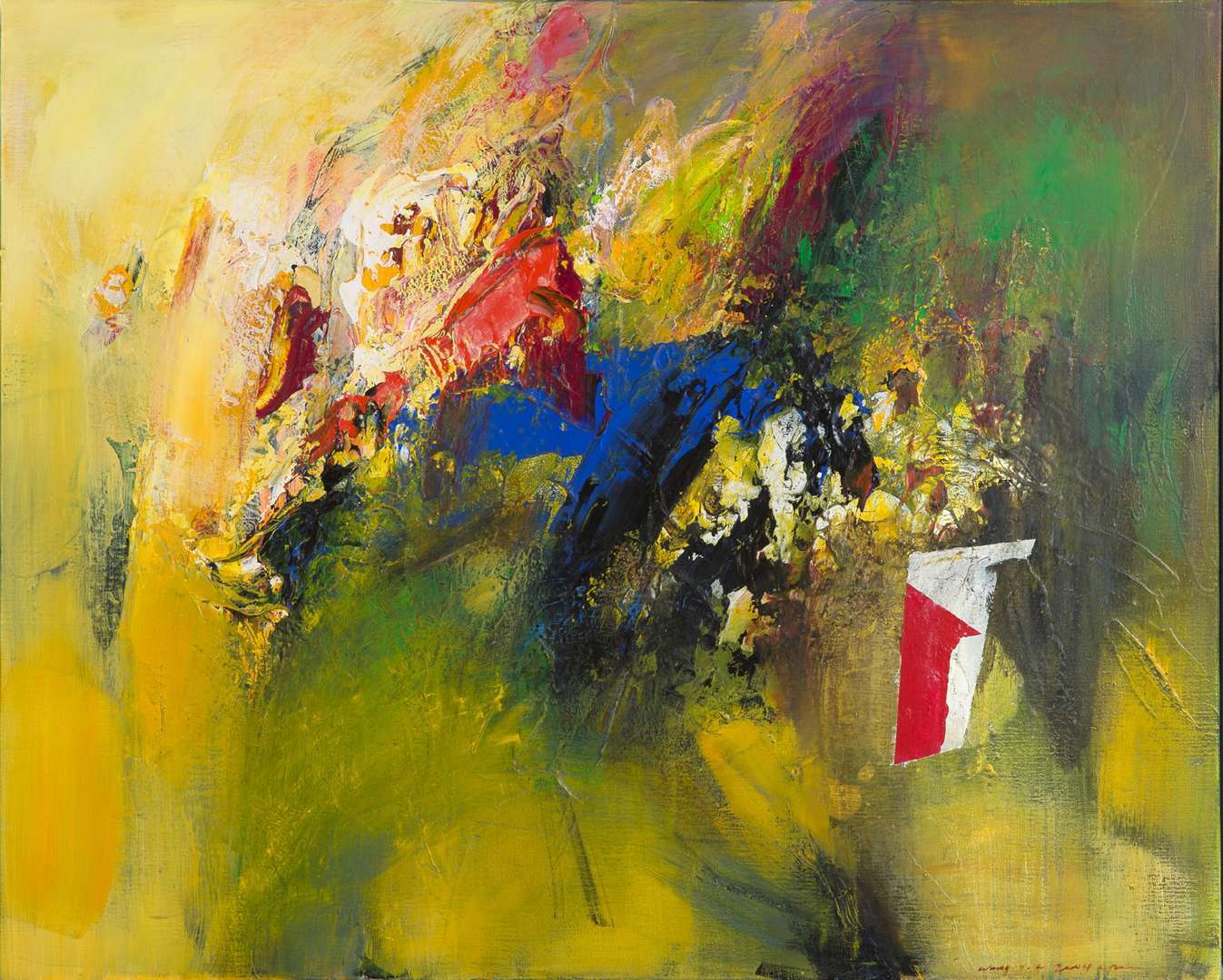 Wang Yancheng naît en 1960 dans la province du Guangdong, en Chine. Peintre franco-chinois, il acquiert une formation académique occidentale aux Beaux-Arts de Shandong, auprès d’artistes chinois revenus de voyage en Europe. Partagé entre France et Chine, Yancheng expose et se fait remarquer en 1996, au Salon d’automne de Paris. Deux ans après l’ascension qui le fait éclore auprès de la critique française, ses œuvres entrent dans les collections publiques chinoises, plus spécifiquement au Musée des Beaux-Arts de Shenzhen et au Musée des Beaux-Arts de Chine, à Pékin. Dans les années 1990, admiratif de Zao Wou-Ki et Chu Teh-Chun, Wang Yancheng séjourne Saint-Etienne pour la première fois. Son travail est l’affirmation de l’héritage de l’abstraction lyrique qu’il reçoit de ces artistes. En 2010, le Musée de Montparnasse lui consacre une rétrospective exposant une série d’œuvres récentes, qui seront par la suite exposées à Pékin. Primordiale dans la peinture de Yancheng, la nature est prépondérante à l’exploration de ses sujets. Les montagnes, océans et déserts, son suggérés par une palette aux teintes naturelles et aux formes organiques, qui agissent en transmetteur de sentiments. Il développe dans ses compositions, une liberté picturale qui lui permet de retranscrire de façon directe ses émotions individuelles.