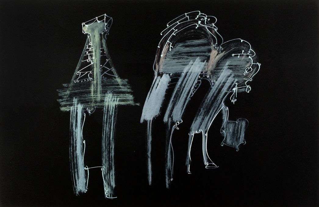 Dessin couleur sur chiffon gélatiné noir, signé et daté au dos