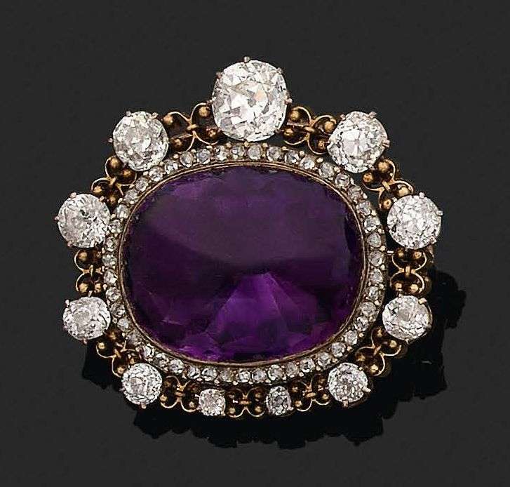 Cabochon d'améthyste, diamants taille ancienne et roses