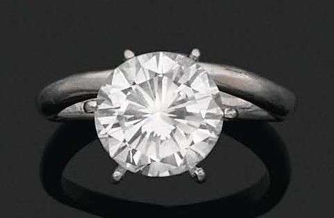 BAGUE «DIAMANT» Diamant rond taille brillant Monture or 18k (750). Td. : 57 - Pb. : 5.7 gr. Accompagnée d'un certificat N°389401 LFG attestant : Poids du diamants : 4.28 carats, Couleur : G, Pureté : VVS2, Fluorescence : Aucune