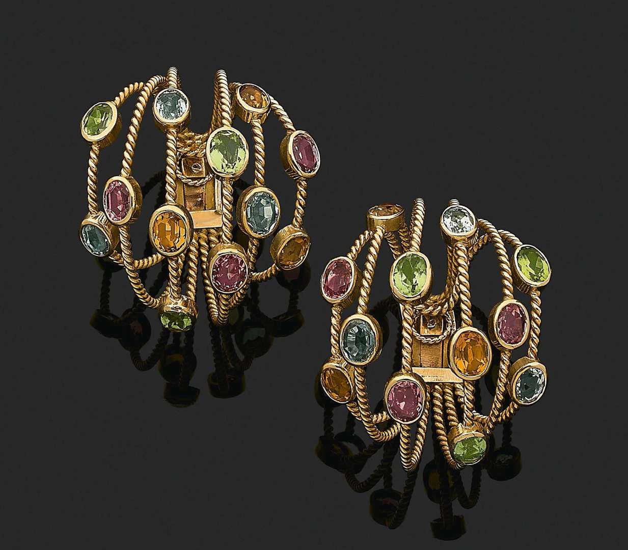 Améthystes, citrines, péridots et or 18k (750)