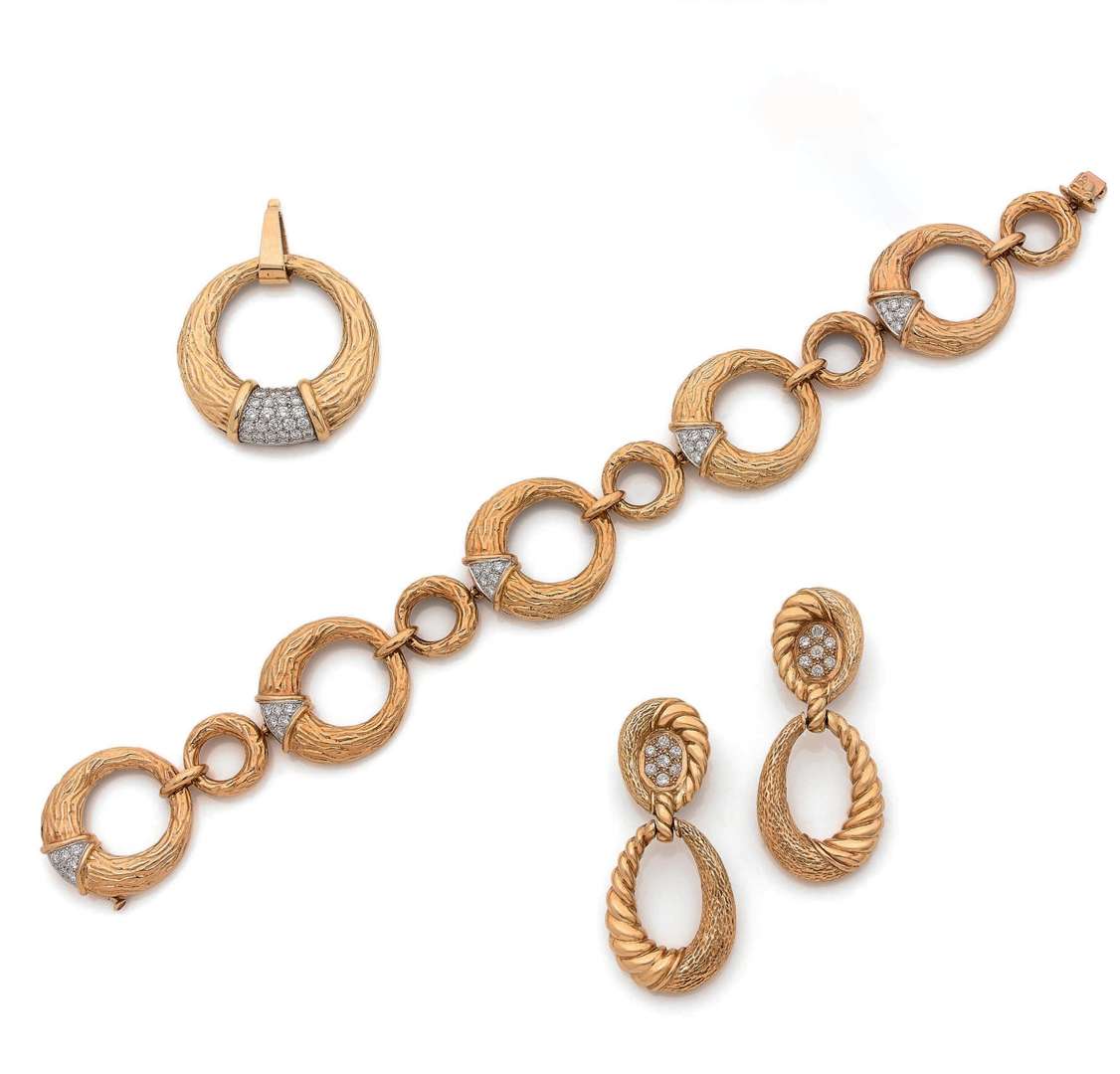On y joint une paire de pendants d'oreilles, or 18k et diamants