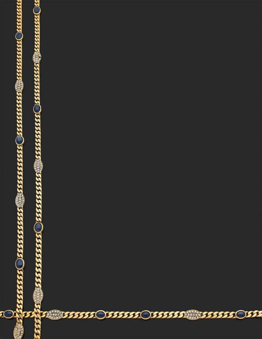 A diamond, sapphire and gold long necklace and bracelet, signed Bulgari