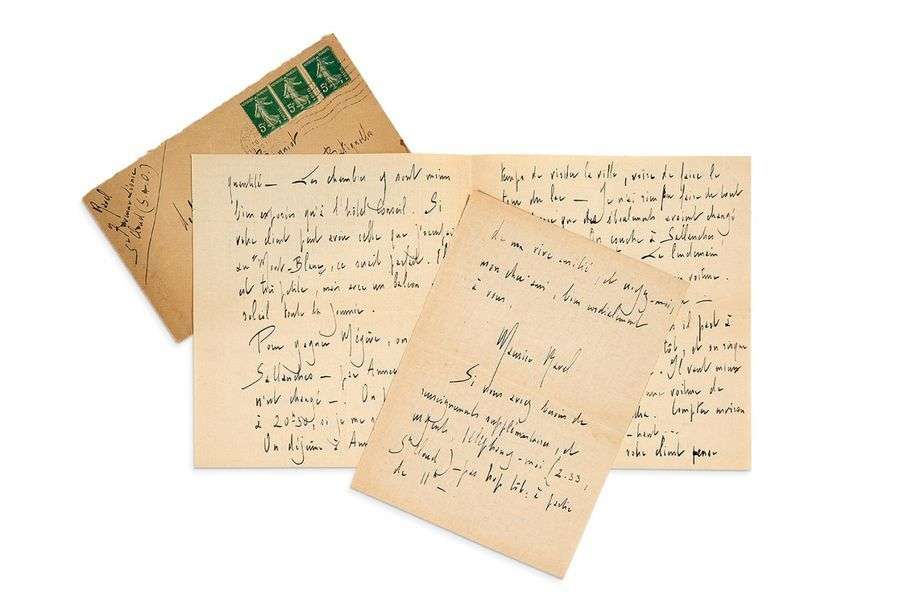 L.A.S. « Maurice Ravel », Saint-Cloud 19 avril 1919, au Docteur Edmond BONNIOT | 6 pages in-8 carré, enveloppe.