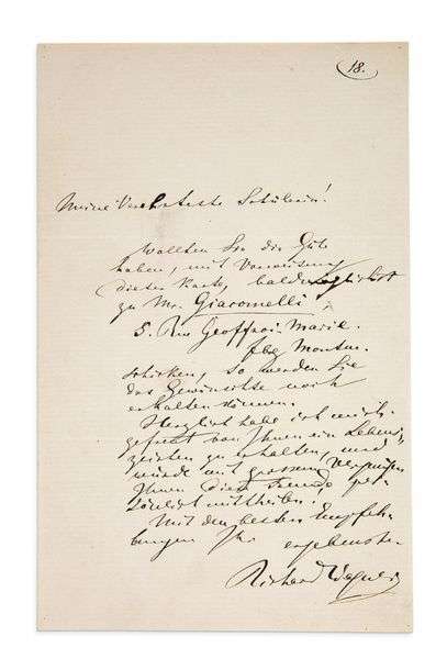 L.A.S. « Richard Wagner », [vers 1860], à une élève | 1 page in-8 | en allemand.