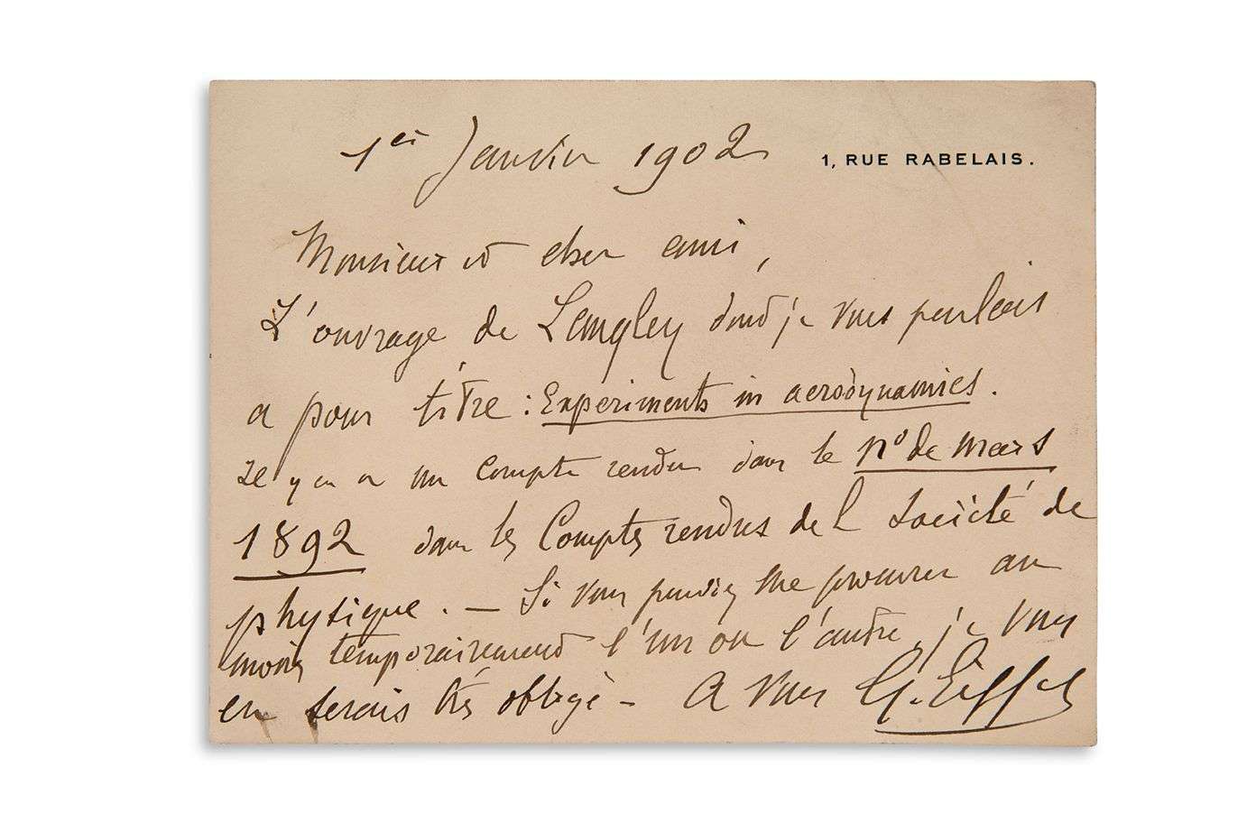 L.A.S. « G. Eiffel », 1er janvier 1902, à un ami | 1 page oblong in-12 à son adresse.