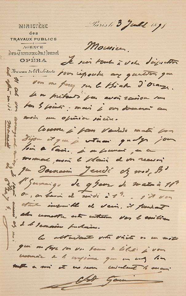 L.A.S. « Ch. Garnier », Paris 3 juillet 1891 | 1 page in-8, en-tête