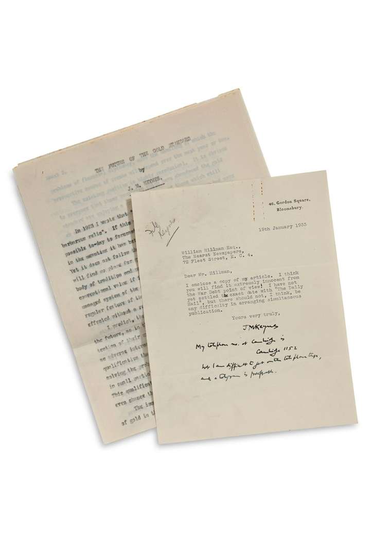 L.S. « JMKeynes » avec 4 lignes autographes, Bloomsbury 19 janvier 1933, à William HILLMAN, à The Hearst Newspapers | 1 page petit in-4 à son adresse | en anglais.