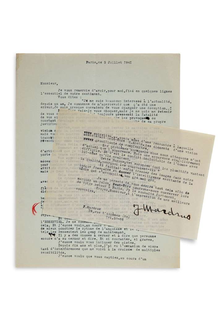 L.S. « J. Mardrus », Paris 5 juillet 1941, à un ami journaliste | 1 page et demie in-4 dactylographiée.
