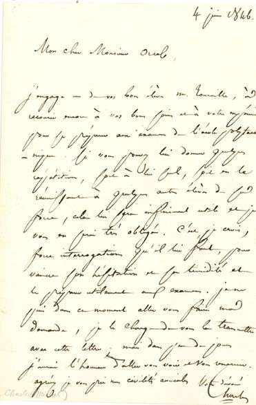 Michel CHASLES (1846, au sujet d'un élève qui prépare les examens de l'école polytechnique). Jean-Nicolas-Pierre HACHETTE (an X, à M. Debon, avec qui il ira, en sortant de l'école polytechnique, au Télégraphe | il a prévenu Chappe). Silvestre-François LACROIX (aux éditeurs Pitois et