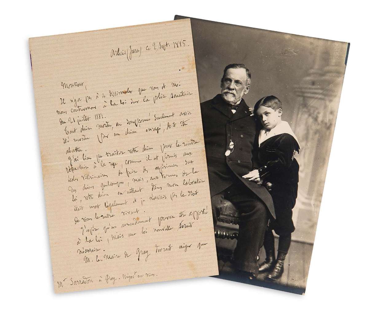 L.A.S. « L. Pasteur », Arbois (Jura) 2 septembre 1885, à M. SARRADON, négociant en vins à Gray | 2 pages in-8 (photographie jointe).