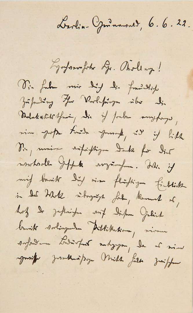 L.A.S. « M. Planck », Berlin-Grunewald 6 juin 1922, à un collègue [Ernst NEUMANN] | 2 pages in-8 | en allemand.