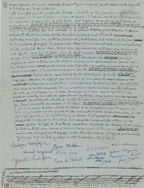 MANUSCRIT signé «André Breton» et par douze autres, écrit par