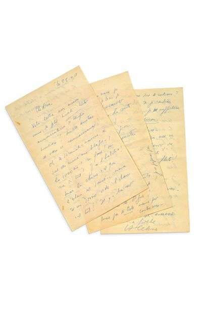 Lettre autographe signée adressée à Paul MARTEAU. Korsör (Danemark), 25 janvier 1948. 6 pages in-4 à l'encre bleue sur papier, enveloppe conservée.