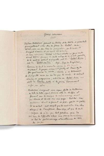 Important texte manuscrit consacré au théâtre et comportant de nombreuses références à Stéphane Mallarmé. Biffures, corrections ou ajouts autographes.
