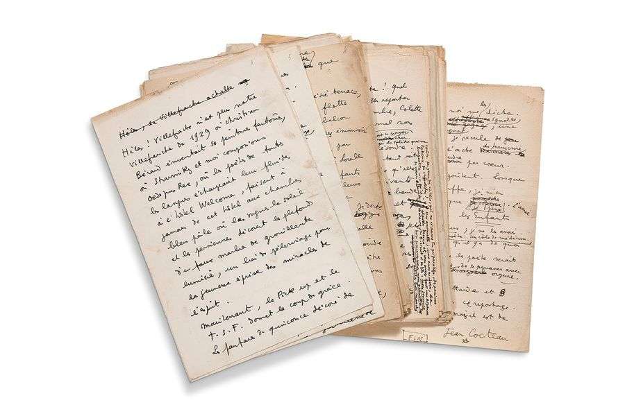 Important manuscrit de poésie de reportage, contant une croisière au large de la Côte d'Azur avec Marcel Khill, de Villefranche-sur-Mer à Toulon, en évoquant les séjours anciens en compagnie de Radiguet et de ses amis.