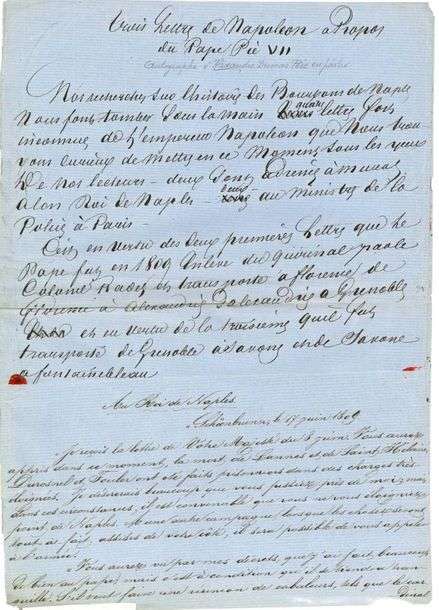 MANUSCRIT en partie autographe, Trois lettres de Napoléon à propos du Pape Pie VII, et 4 L.A.S. «A. Dumas» ou «Al. Dumas»| 4 pages in-4 (plus de 20 lignes autographes), et 4 pages in-8 (2 portraits joints).