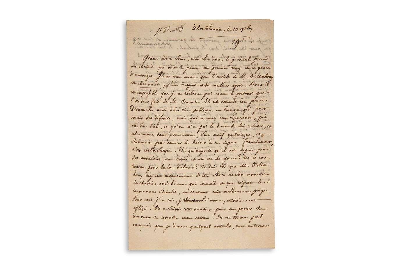L.A.S. « F. M. », à la Chênaie 10 décembre [1822], à Jacques Bins de SAINT-VICTOR | 2 pages in-8, adresse.