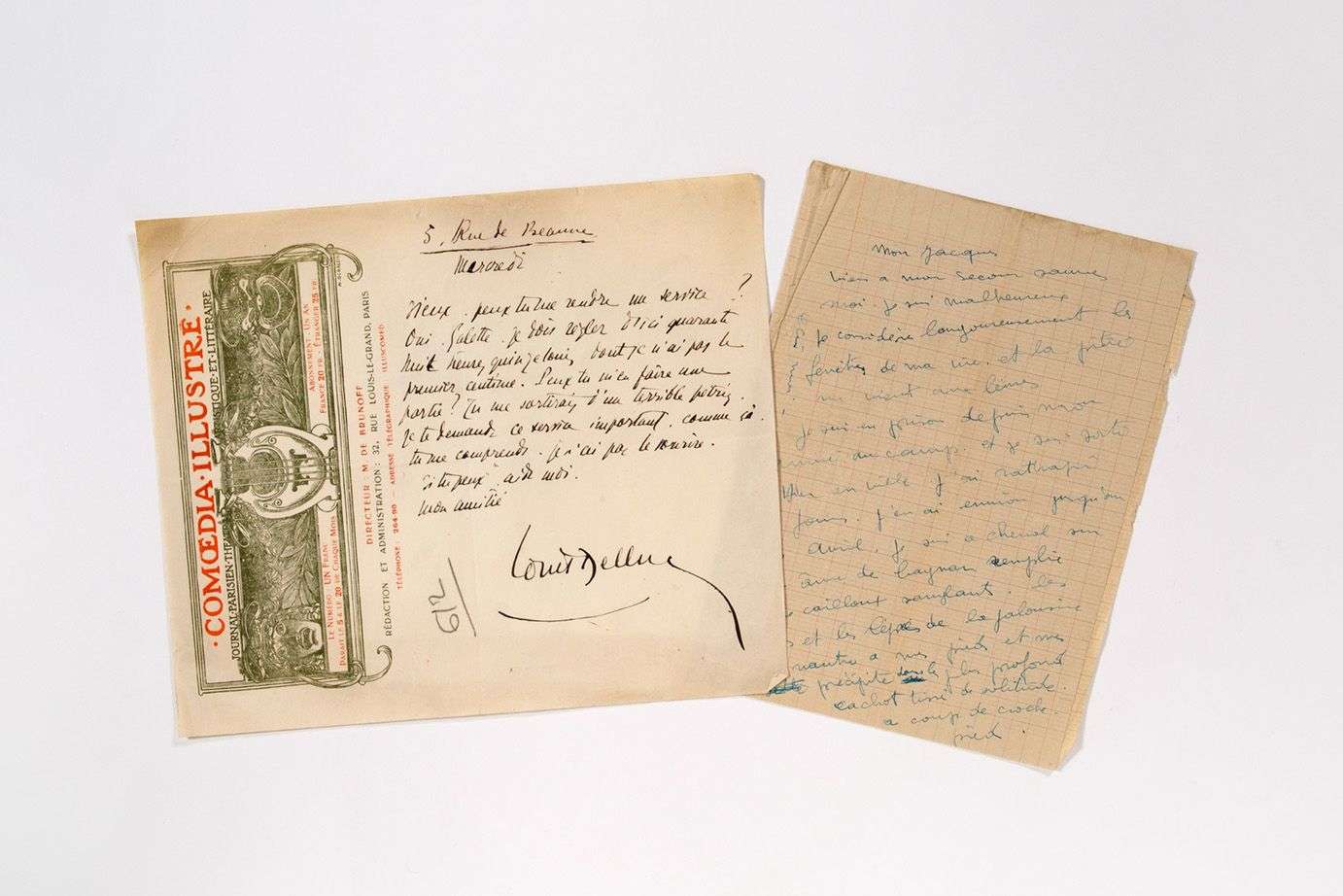 On y joint 2 L.A.S., de Louis DELLUC à entête «Comoedia Illustré» 2 pages. in-4. Plus d Divers documents du XIXe siècle.