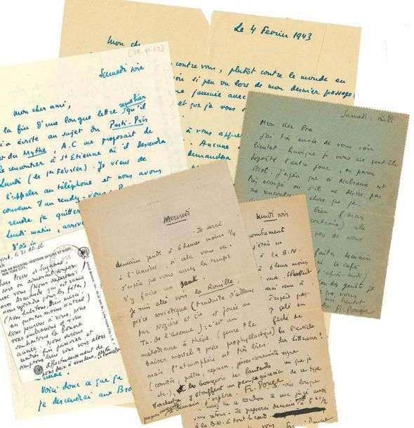 CAMUS] me proposait de le rencontrer à St Étienne où il descendra » | Ponge s'y rendra et s'arrêtera à Lyon pour voir Pia. « Un mot de Jean [PAULHAN] aujourd'hui qui me dit entre autres qu'il a été content de voir