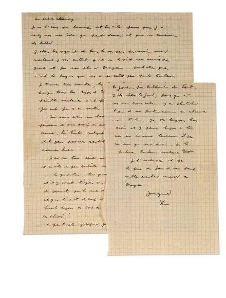 Lettre plutôt pessimiste et nostalgique signée «Jacques» et illustrée d'un petit dessin, adressée à Claudy Carter avec laquelle il était lié sentimentalement.