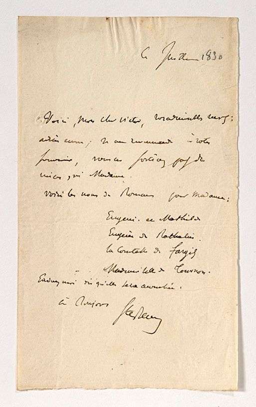 Lettre autographe signée le 4 juillet [1830] adressée à Victor HUGO.