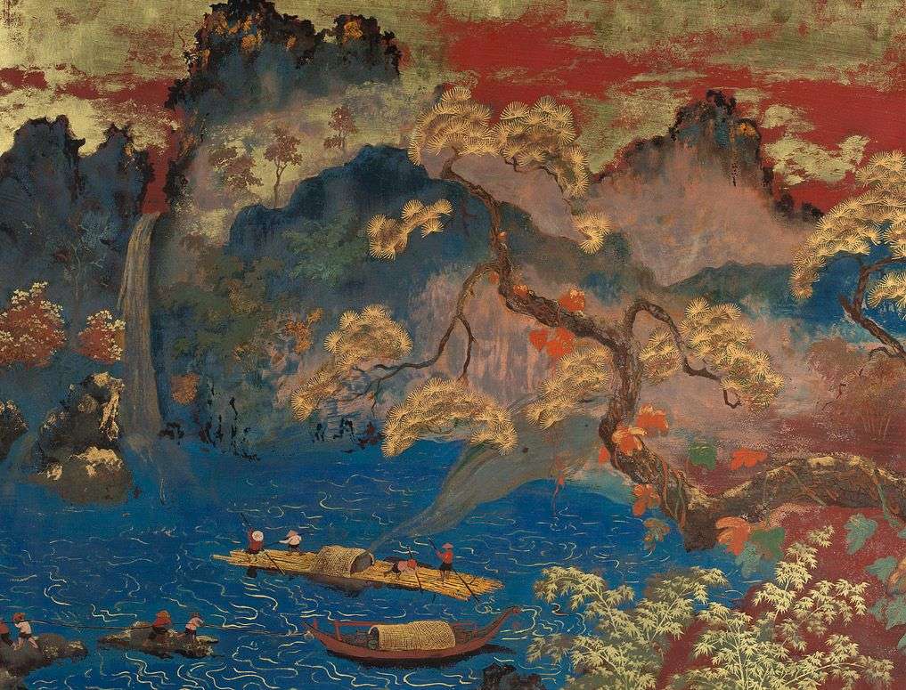 Laque et rehauts d’or, signée et datée en bas à droite « HIN 53 », porte une signature audos