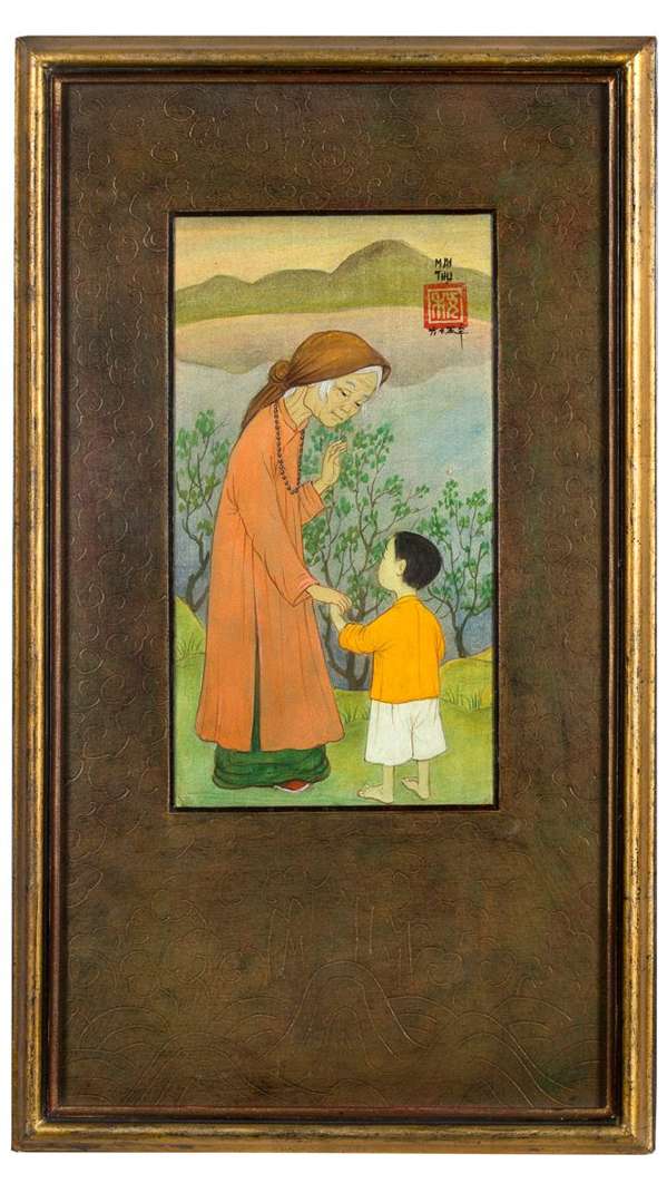 Mai Trung Thứ rời Việt Nam vào cuối những năm 1930. Cư trú một thời gian ở Mâcon và sau đó tới Paris, tình yêu của ông đối với quê hương đất nước luôn còn nguyên vẹn. Bức Grand-mère được sáng tác năm 1965 là phần