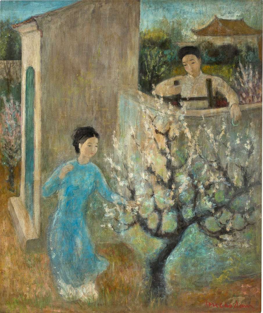 Với sự dịu dàng và duyên dáng tuyệt vời, Vũ Cao Đàm đã phô bày được lời tuyên bố tình yêu của chàng trai trẻ. Mặc dù ta có thể nhận ra khoảnh khắc này nhờ bối cảnh dàn dựng khá tài tình, tuy nhiên, một số chi tiết thể hiện tính tự do sáng tạo của nghệ sĩ. Thật vậy, hai chiếc nhẫn vàng được thay thế bằng một chiếc nhẫn ngọc, tượng trưng cho sự trong sạch theo quan niệm của Nho giáo. Một loại đá mang tính biểu tượng cao, mang tính quyền quý và tâm linh, nó nhấn mạnh sự tôn trọng của nghệ sĩ đối với nền văn hóa nước mình. Một ấn tượng về sự tinh tế