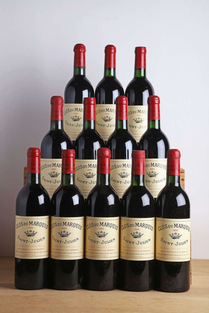 12 B CLOS DU MARQUIS (Caisse Bois d'origine) (11 B.G.- ou mieux et 1 T.L.B.+| 2 c.s| 6 capsules bombées) - 1985 - Saint-Julien
