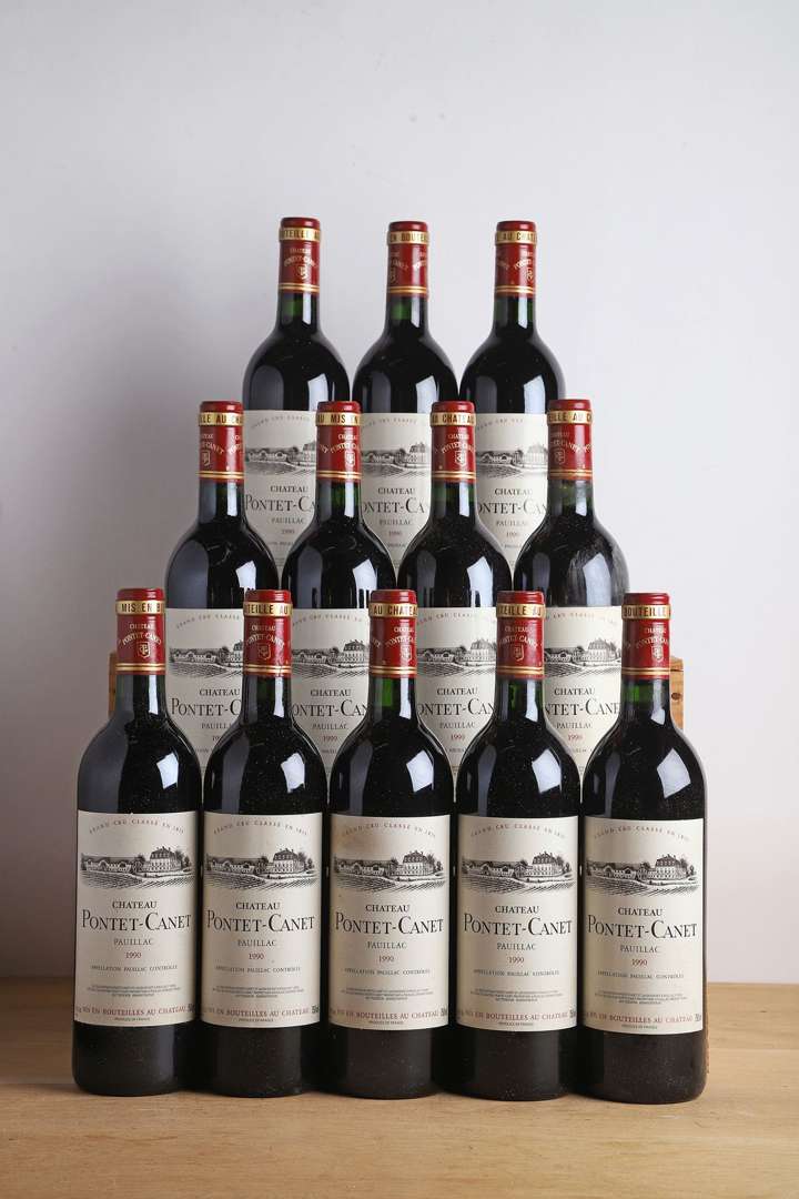 12 B CHÂTEAU PONTET-CANET (Caisse Bois d'origine) (1 e.t.h. légères) - 1990 - GCC5 Pauillac