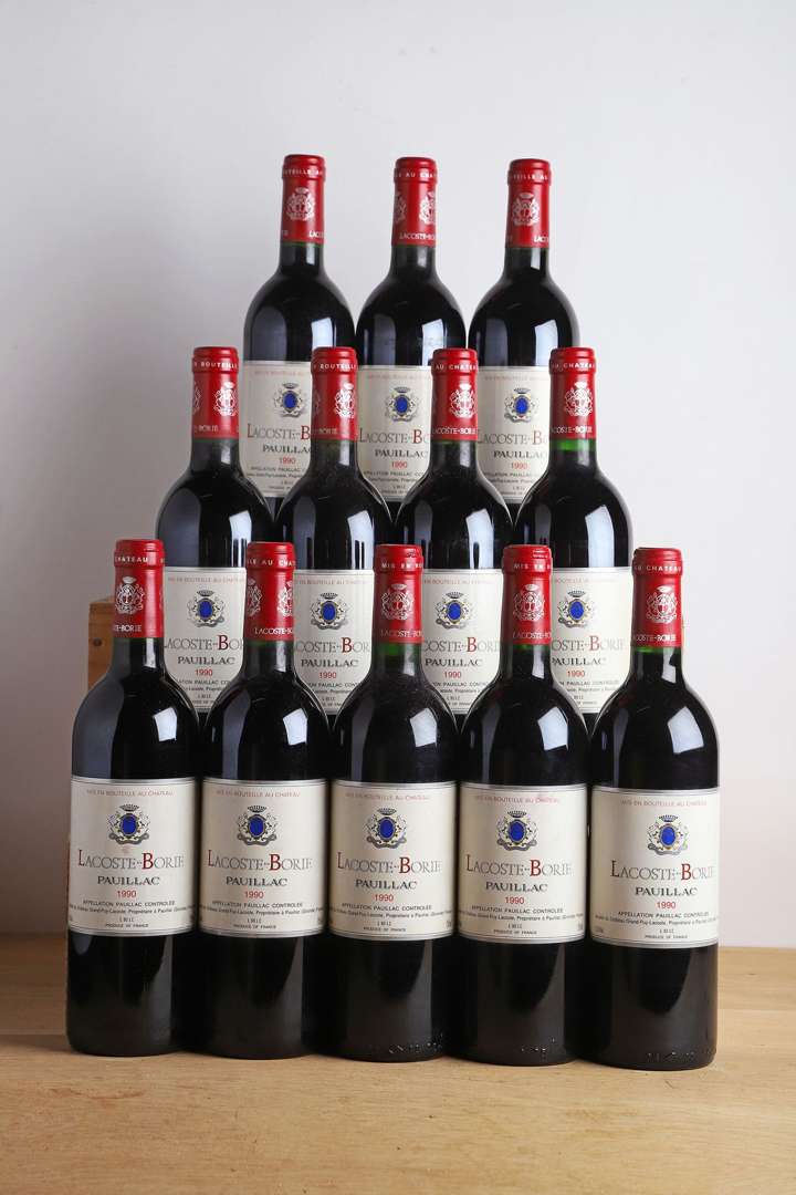 12 B LACOSTE BORIE (Caisse Bois d'origine) (e.t.h. légères) - 1990 - Pauillac