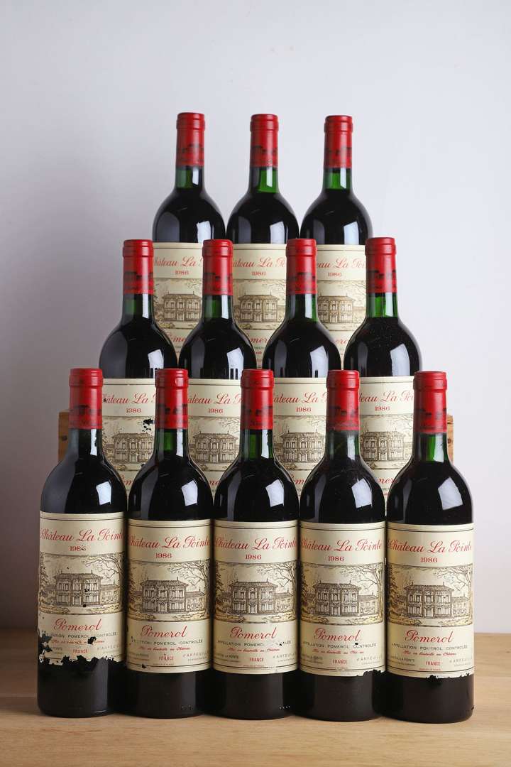 12 B CHÂTEAU LA POINTE (Caisse Bois d'origine) (7 B.G| 4 T.L.B.+| e.a. et 1 e.q.i.) - 1986 - Pomerol