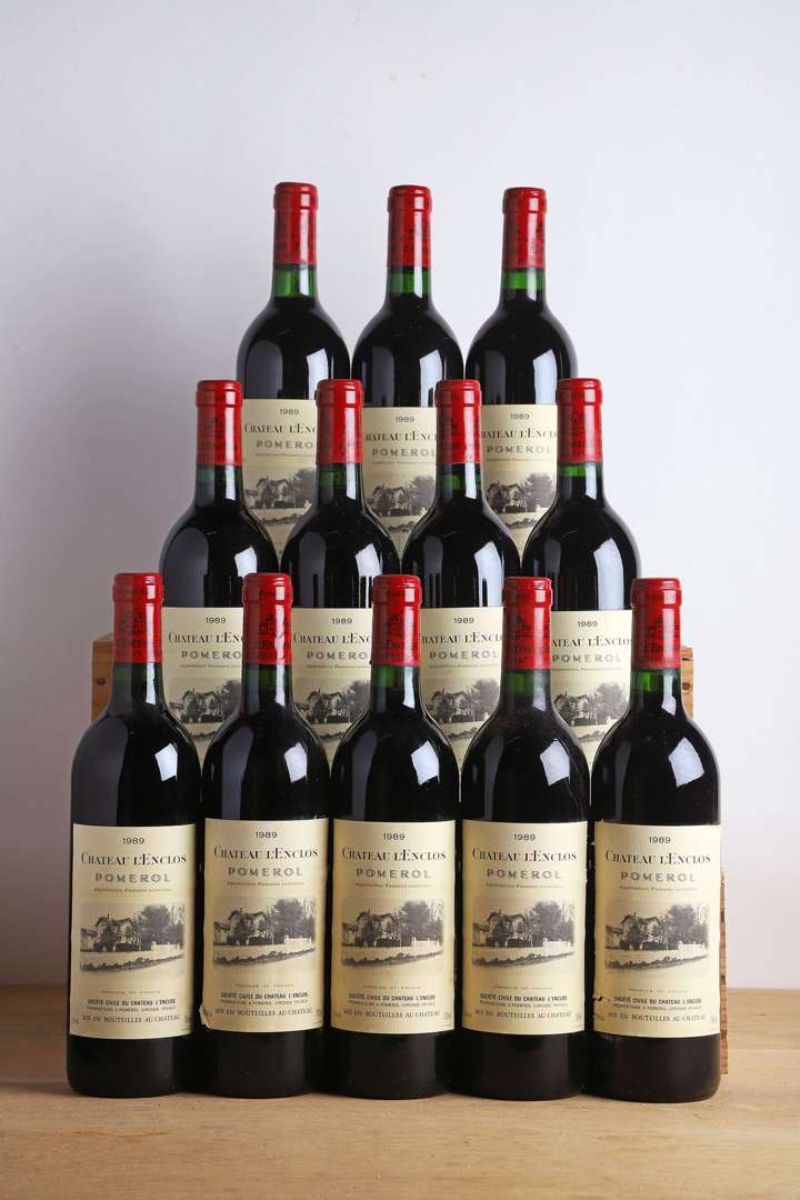 12 B CHÂTEAU L'ENCLOS (Caisse Bois d'origine) (1 B.G| e.t.h. légères dont 1 e.a.) - 1989 - Pomerol