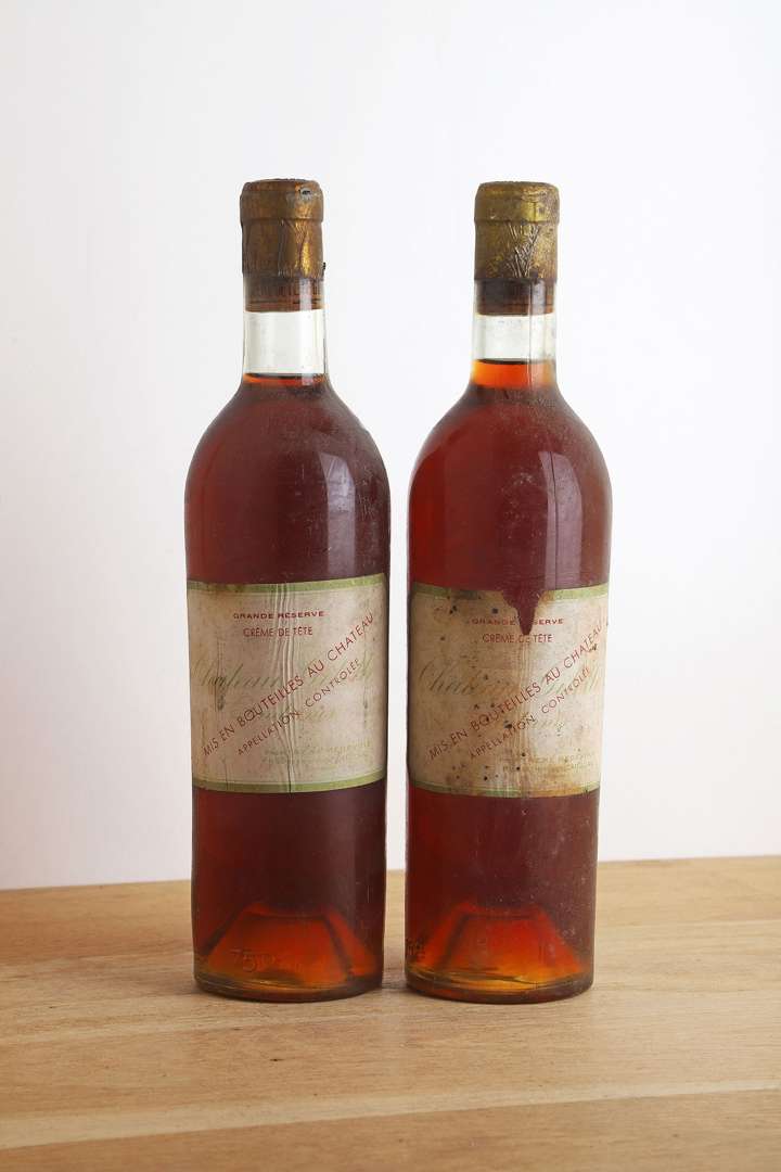 2 B CHÂTEAU GILETTE CRÈME DE TÊTE GRANDE RÉSERVE SUPPOSÉES 1949 (1 B.G| e.t.h. dont 1 e.t.a| 1 c.c. légères| 1 c.a. côté) - NM - Sauternes