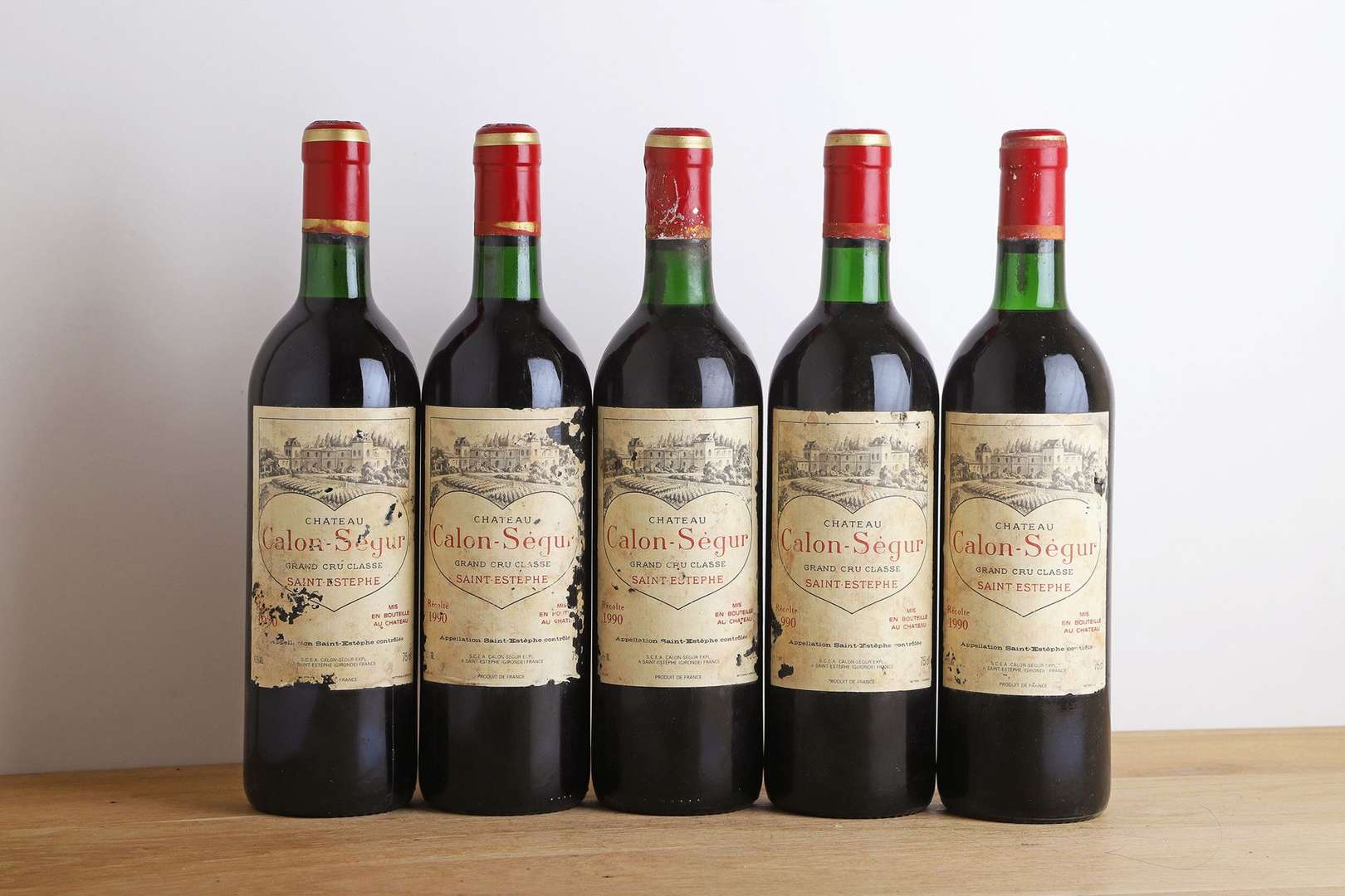 5 B CHÂTEAU CALON-SÉGUR (4 B.G| 1 B.G.-| e.t.a. avec 2 millésimes partiellement lisibles) - 1990 - GCC3 Saint-Estephe