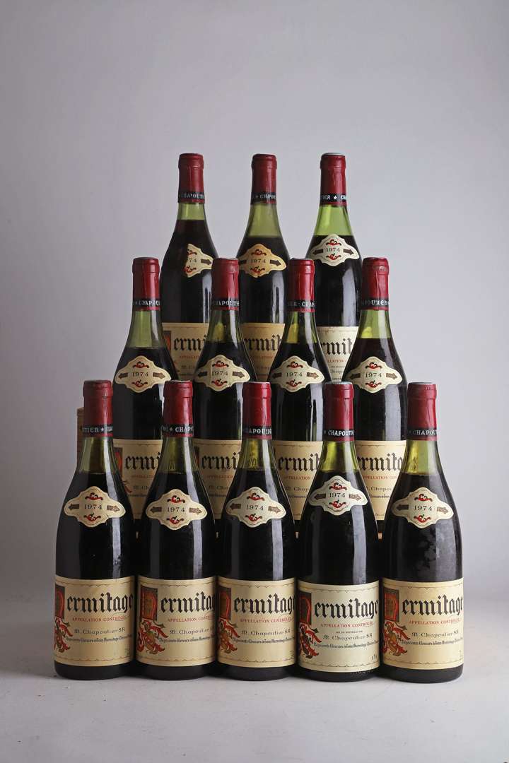 12 B HERMITAGE Rouge (4 à 3| 5 à 3,5 et 2 à 4 cm| e.l.s. dont 2 e.a| 1 clm.a| 1 c.a.) - 1974 - Chapoutier